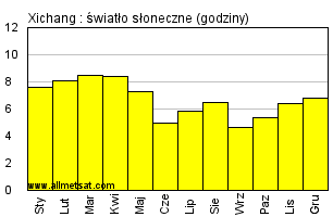 | Miesięczna średnia liczba godzin światła słonecznego w ciągu dnia. |