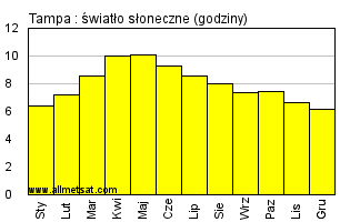 | Miesięczna średnia liczba godzin światła słonecznego w ciągu dnia. |