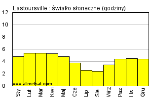 | Miesięczna średnia liczba godzin światła słonecznego w ciągu dnia. |