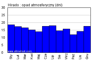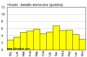 | Miesięczna średnia liczba godzin światła słonecznego w ciągu dnia. |