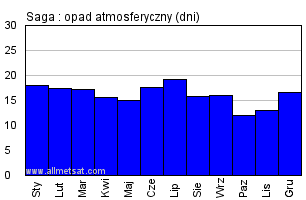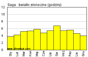 | Miesięczna średnia liczba godzin światła słonecznego w ciągu dnia. |