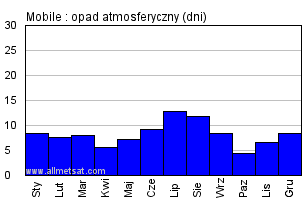 | Liczba dni z opadami >= 1 mm |