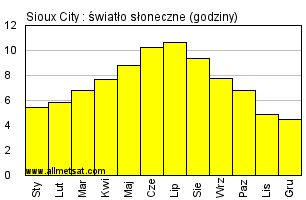 | Miesięczna średnia liczba godzin światła słonecznego w ciągu dnia. |