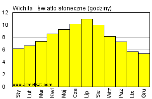 | Miesięczna średnia liczba godzin światła słonecznego w ciągu dnia. |