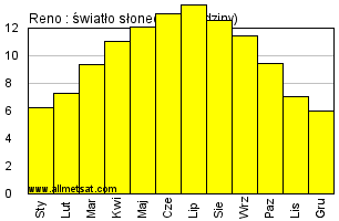 | Miesięczna średnia liczba godzin światła słonecznego w ciągu dnia. |