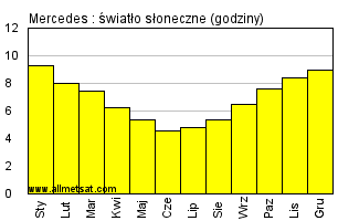 | Miesięczna średnia liczba godzin światła słonecznego w ciągu dnia. |