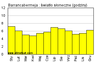 | Miesięczna średnia liczba godzin światła słonecznego w ciągu dnia. |