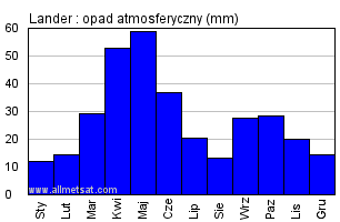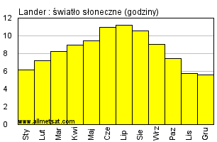 | Miesięczna średnia liczba godzin światła słonecznego w ciągu dnia. |